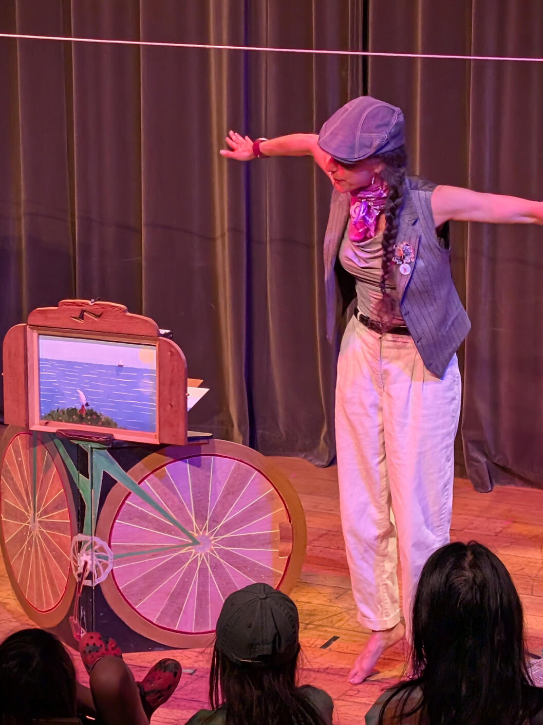 Naomi Steinberg viens de terminée une tournée canadienne de 55 spectacles pour promouvoir son livre autoédité, Goosefeather, qui raconte son périple de 382 jours et 55 965 kilomètres autour du globe, par terre et mer. Intégrant récit de voyage et mémoires intimes, Goosefeather partage les hauts et les bas d’une aventure internationale inoubliable. www.goosefeather.caNaomi offre aussi un spectacle pour enfants inspiré de son livre. Développé au cours d'une microrésidence offert par le Conseil Culturel et Artistique de la Colombie Brittanique, le spectacle utilise l’art du kamishibaï, combinant la littérature, le conte, la narration et l’image.Le kamishibaï est une forme traditionnelle japonaise de narration qui utilise un simple cadre en bois avec des images à l'intérieur, animées par la voix de l'interprète. L'utilisation habile de l'imagerie graphique, de la voix et du mouvement fait du kamishibai une forme populaire de divertissement de rue ainsi qu'un spectacle à succès en classe ou en petit theatre.